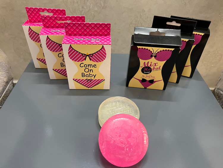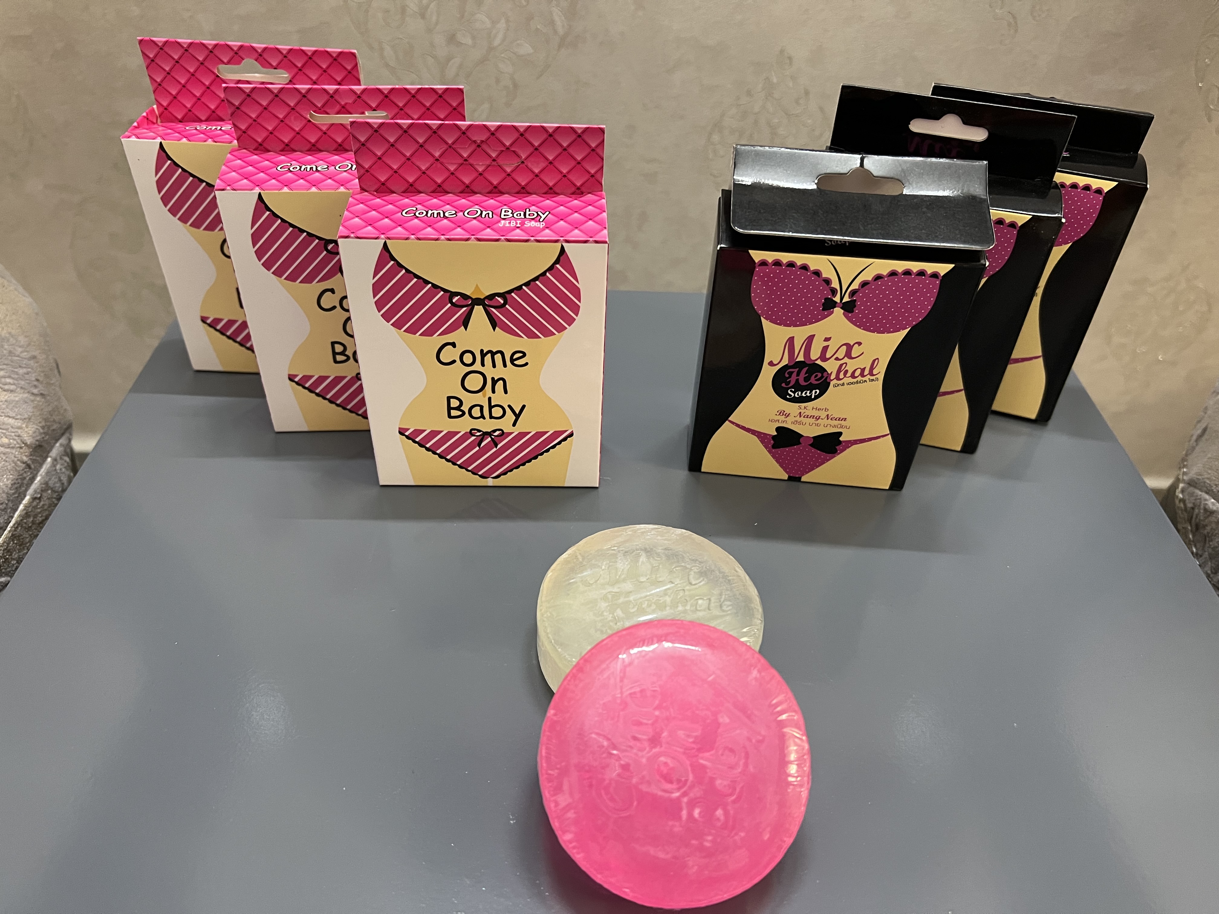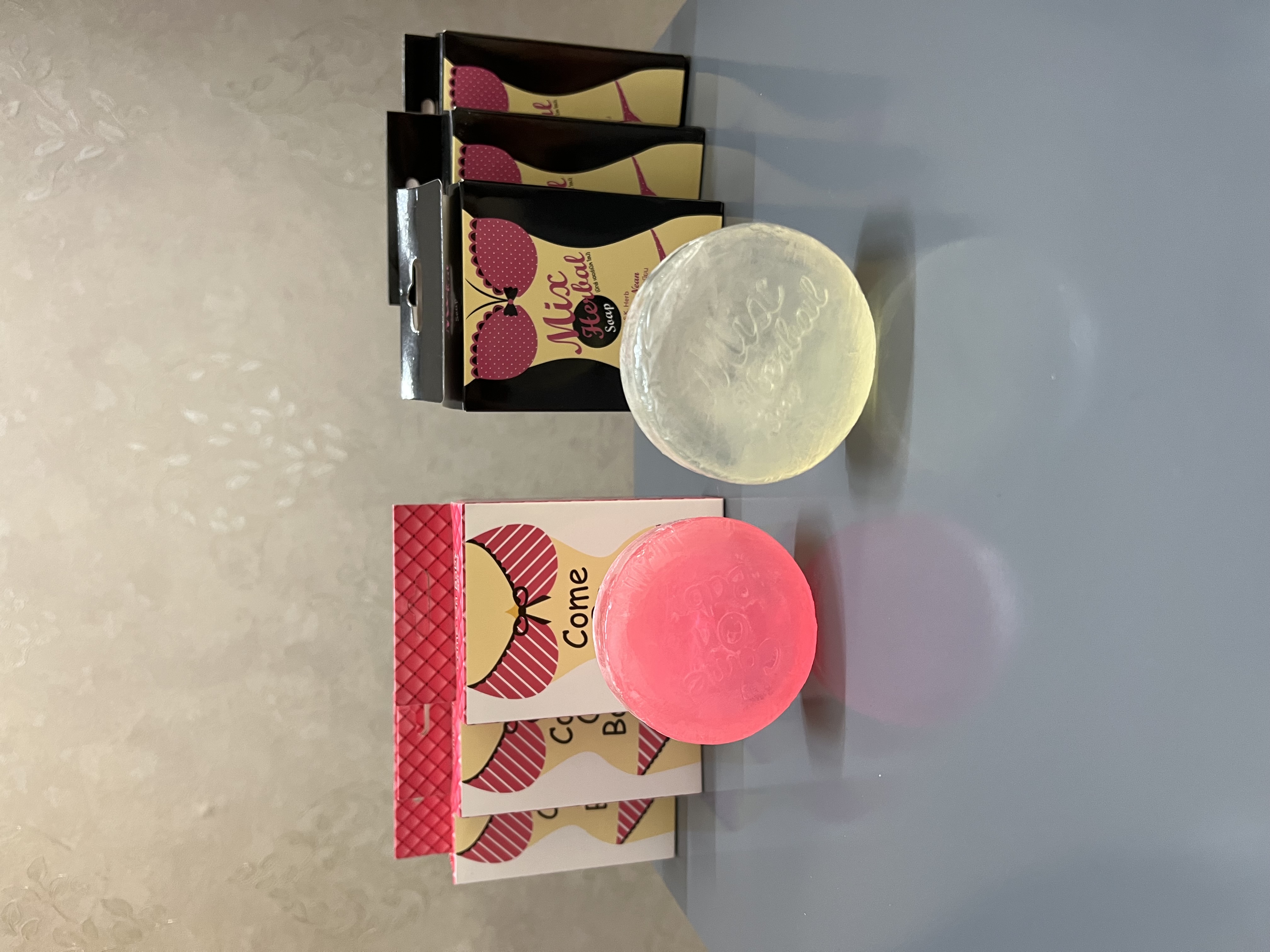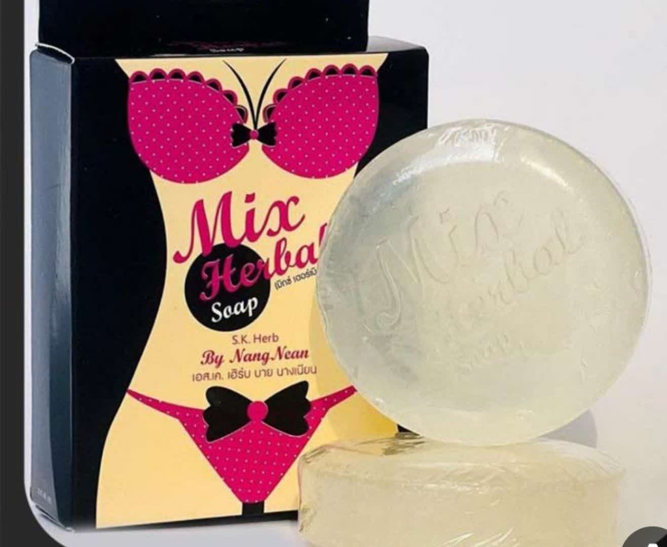 صابون سفید کننده و روشن کننده نواحی حساس تایلندی در دو رایحه گلی ( صورتی ) و گلی میوه ای ( بی رنگ ) سفید کننده و حاوی گلیسیرین ، ویتامین E،روغن نارگیل،روغن هسته خرما،گیاه مارچوبه و زردچوبه می باشد.